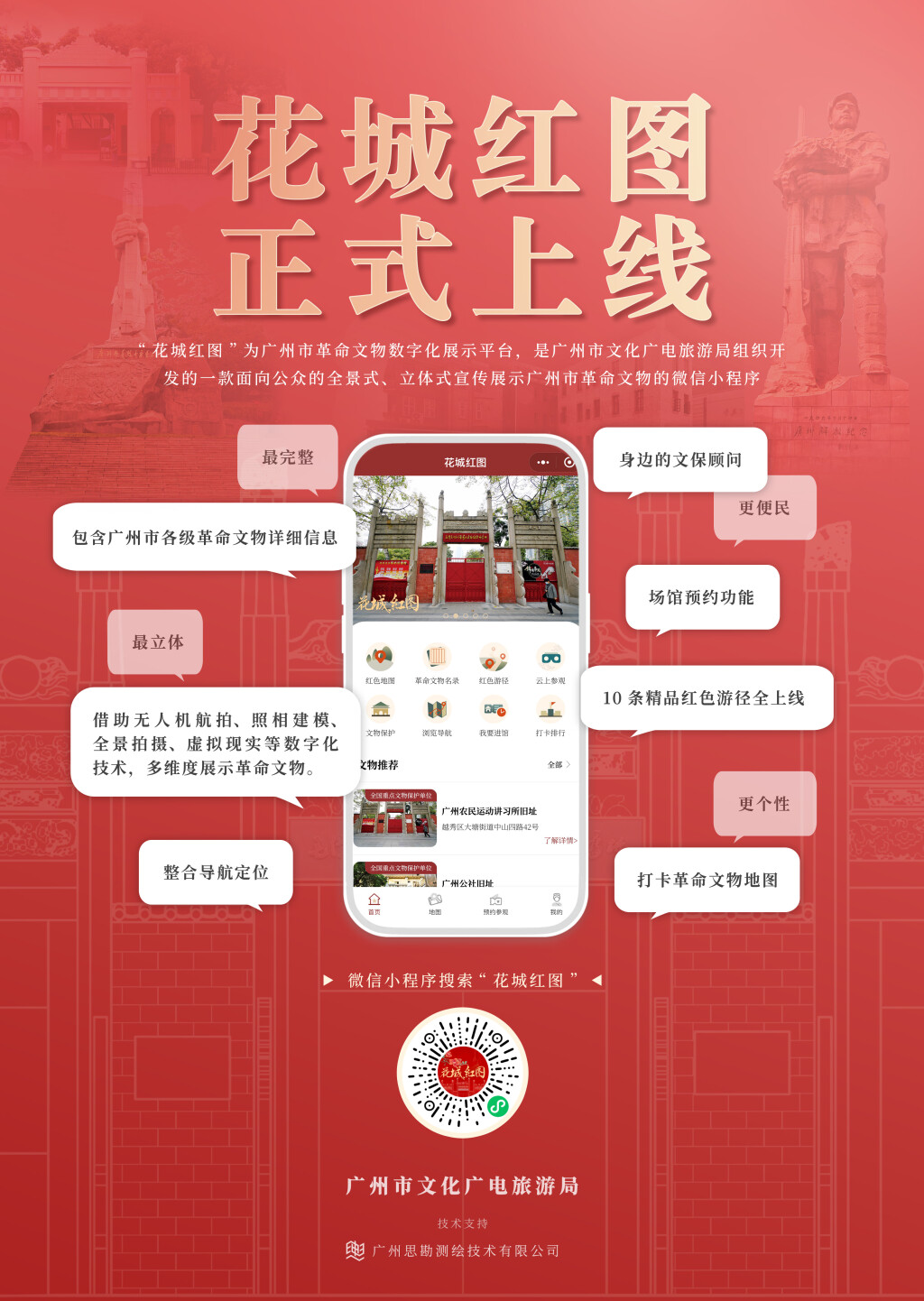 “花城紅圖”安身于廣州市豐盛的不成變動位置反動文物質源,發明性地整合實景航拍、全景漫游、白色輿圖、白色游徑等效能于一端,為市平易近游客供給廣州反動文物“一站式”數字化進口。用戶只需在微信小法式頁面搜刮“花城紅圖”,即可一鍵開啟包養網白色廣州體驗之旅。