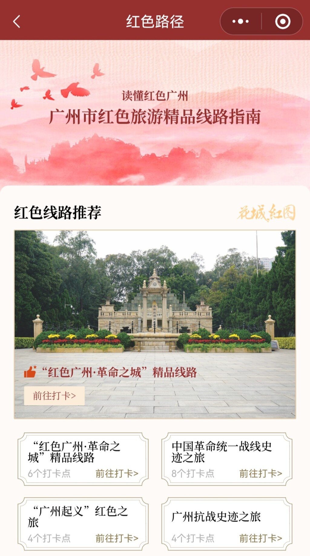 “花城紅圖”小法包養網式還設有反動文物加入我的最愛打卡效能,點擊文物概況頁的在線打卡按鈕,即可加入我的最愛追蹤關心反包養網車馬費動文物,并繪制獨包養網車馬費屬于您的打卡輿圖。